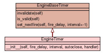 An EngineTimer object represents a timer bound to an engine that fires at a preset time in the future. Timers can fire either only once or repeatedly at fixed time intervals. Repeating timers can also have their next firing time manually adjusted.